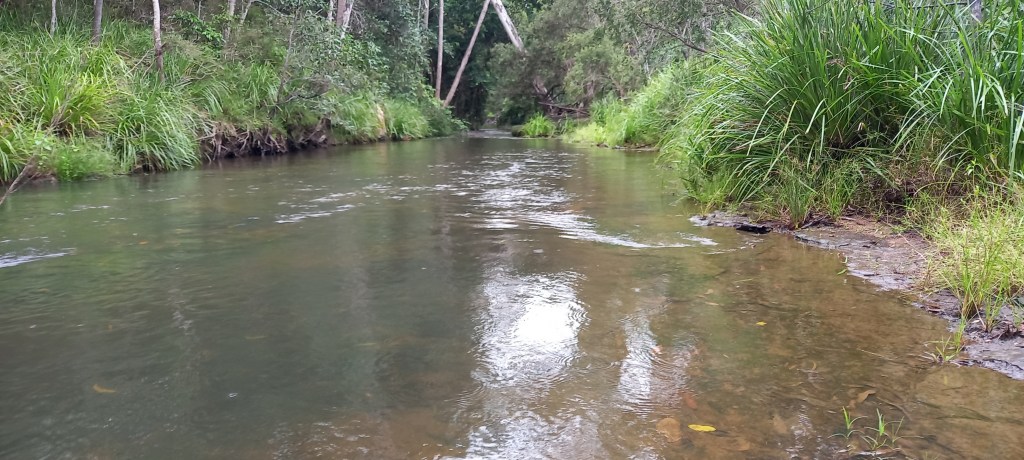 I walked about 10km out along Kings Bore Road to the intersection with Cooloola Way. It was a really nice walk and even though everything was killing me, and I had a massive headache, it didn’t get to me too much. I got to see this awesome creek, which I would not have even known existed had I not left the hike…